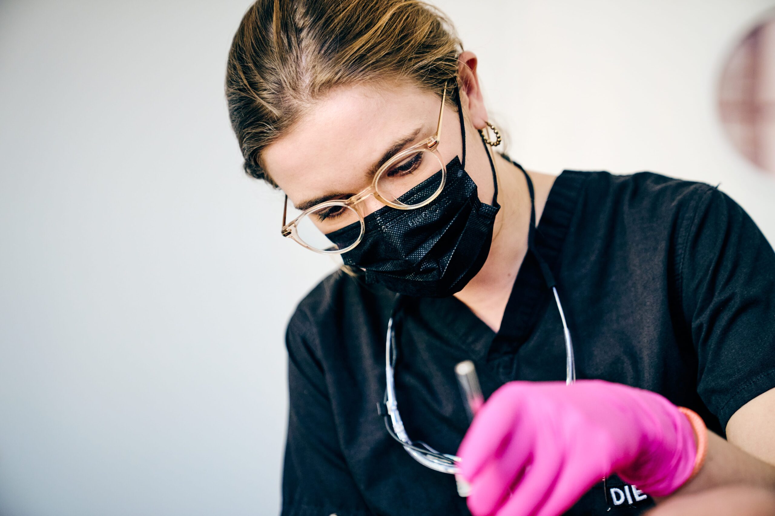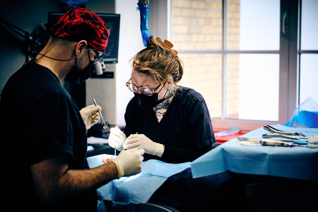 Leonie, die Zahnfee aus Frankfurt am Main, hat sich auf eine ganz besondere Reise begeben: Beruflich nach Berlin gekommen, fand sie nicht nur den Weg in die Hauptstadt, sondern auch direkt in die Herzen ihrer Patienten – und das mit einem Lächeln, das so strahlend ist wie ein frisch polierter Zahn. Was für ein Zufall, dass sie bei einem chirugischen Fortbildungskurs bei Mischa landete. Scheinbar war es bei Mischa war alles so spannend, dass sie gleich mehrere Fortbildungen hintereinander absolvierte und dann einfach bei uns geblieben ist. Gute Entscheidung. Dabei hat sie nicht nur ihr Fachwissen aufpoliert, sondern auch ihre Begeisterung für die Parodontologie und mikroskopische Parochirurgie entdeckt – zwei Disziplinen, die sie heute bei uns im Team mit Herz und Seele und absoluter Hingabe und Präzision ausübt.